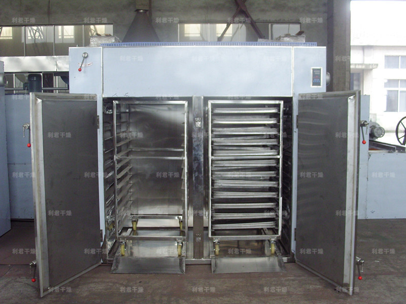 大部分熱風在箱內循環,熱效率高,節約能源。利用強制通風作用,箱內設有可調式分風板,物料干燥均勻,熱源可采用蒸汽、熱水、電、遠紅外,選擇廣泛。整機噪音小,運轉平衡。溫度自控,安裝維修方便。適用范圍廣,可干燥各種物料,是通用干燥設備。